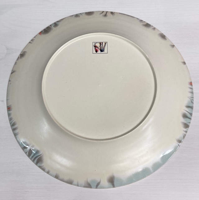 A richly coloured decorative earthenware plate, inspired by geographical and geological depiction, measuring 30.5cm in diameter.